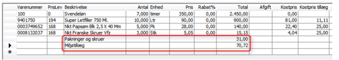 Fasthold varesalgspris: Brug salgspris fra varekartotek ved brug af varenummer.