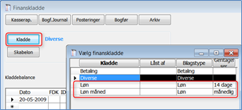 Hvis man anvender EG Lønservice er det muligt at indlæse lønbilag direkte til finanskladden. I modsat fald kan man oprette en standardkladde til nem og hurtig bogføring af lønbilagene. Standard regnskabet indeholder 2 kladder til formålet, den ene kladde til 14-dages lønninger, den anden til måneds lønninger.