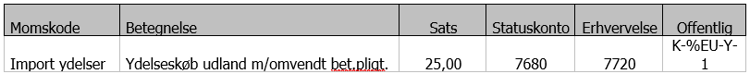 Import ydelse - bruges når der købes ydelser uden for EU