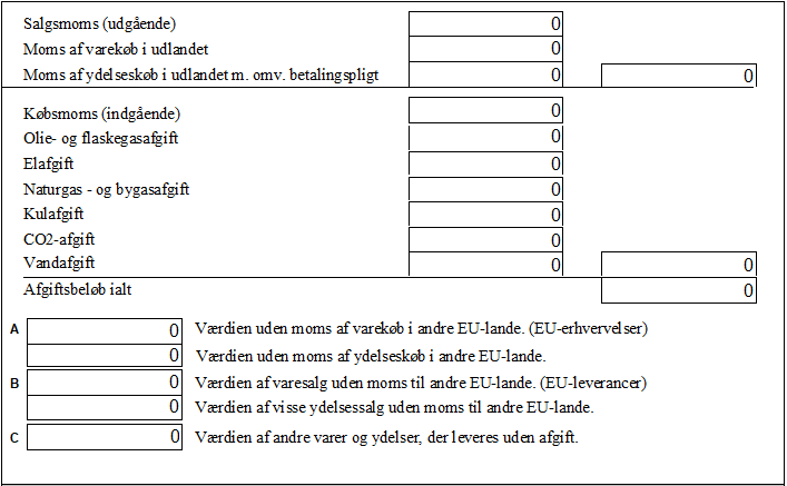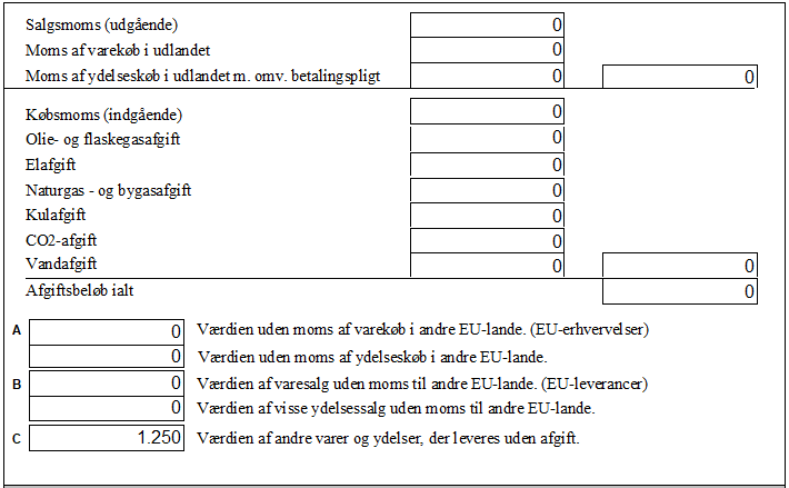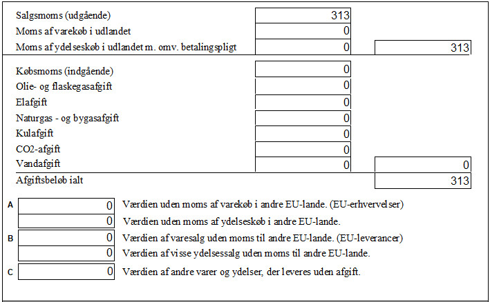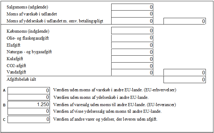 I alle tilfælde er det momstypen der bestemmer, i hvilken rubrik (A – B – C) værdien vises.