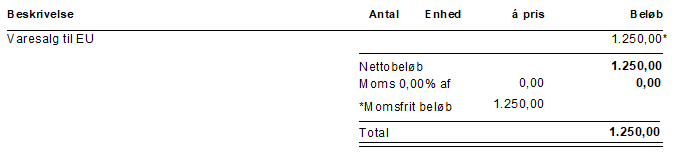 EUsalg – bruges når der sælges varer til et EU land.