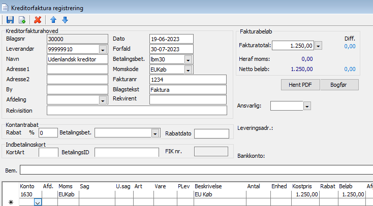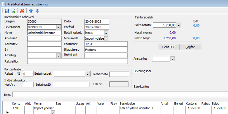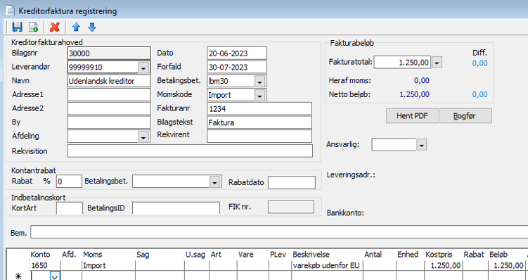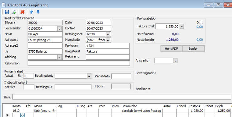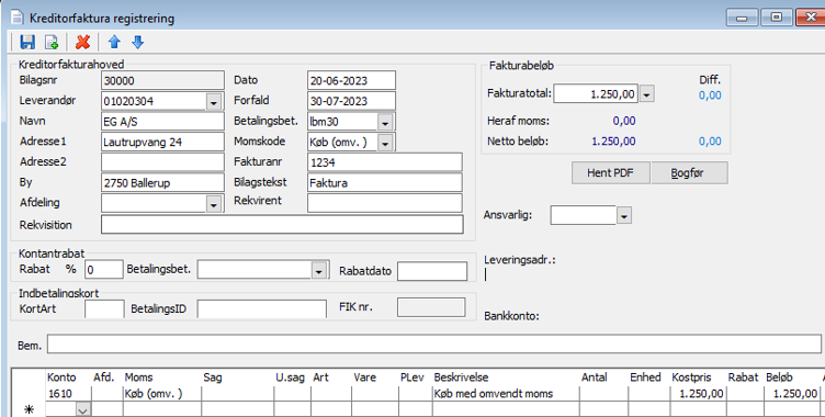 Kreditorfakturaregistrering – HUSK samme momskode både i hovedet + på linjen