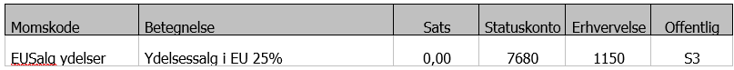EUsalg ydelse – bruges, når der sælges visse ydelser til et EU land.