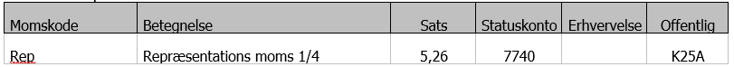 Rep - repræsentation bruges, når der kun kan fratrækkes 1/4 moms