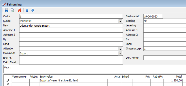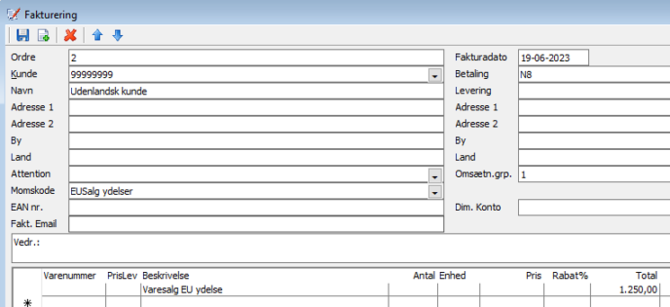 Debitorfakturaregistrering – HUSK at vælge momskode på fakturahovedet og på varelinien