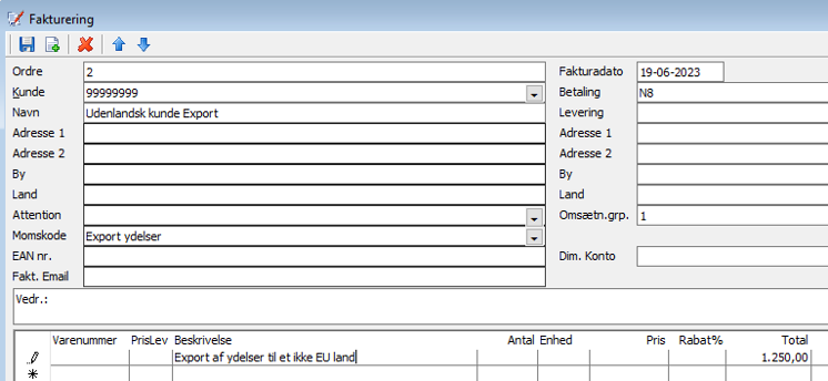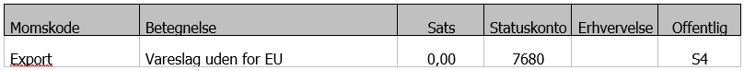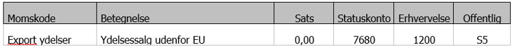 Eksport ydelser – bruges når der sælges ydelser uden for EU