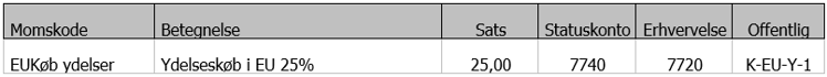 EU køb ydelser - bruges når der købes ydelser fra et EU land (f.eks. arbejdskraft)