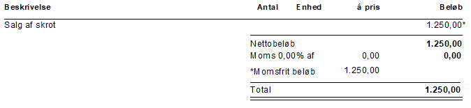Salg (omv) – bruges blå. ved salg af skrot
