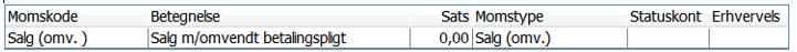 I nedenstående kan ses hvorledes momskoder til forskellige formål oprettes i EG Visual, dels for at bogføringen af momsen sker korrekt, men også for at de krævede informationer vises korrekt på momsangivelsen.
