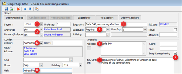 - Her foreslås næste sagsnr., hvis dette er valgt under Opsætning -> Valgmuligheder -> Sager.