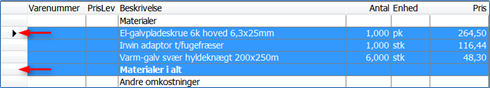 For sletning af en linje markeres aktuel linje ved at klikke i den grå kolonne yderst til venstre. Tryk derefter på tasten <Delete> på tastaturet.