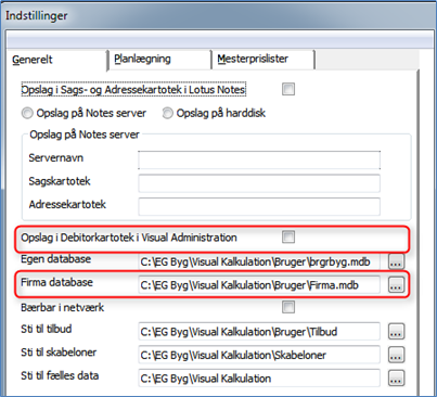 Sæt flueben i feltet "Opslag i Debitorkartotek i EG Visual". Hermed kan du anvende allerede oprettede debitorer i EG Visual, når du skal lave en ny kalkulation.