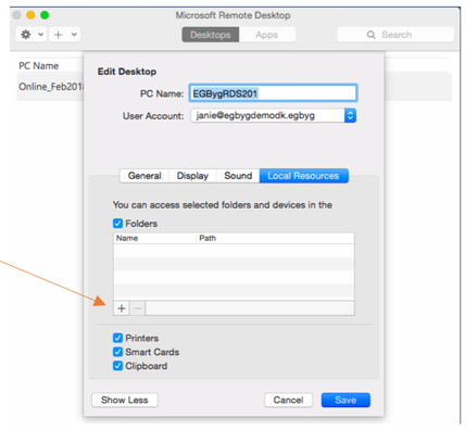 Klik på RDP filen som du lige har trukket over i appen, herefter klikkes på tandhjulet hvor der vælges Prederences.