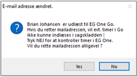 Når man ændre eller sletter en medarbejders mailadresse, får man denne besked: