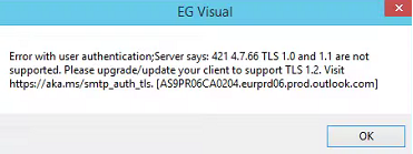 Teknisk kan det forklares med, at alle systemer skal kører TLS 1.2 og Microsoft har i den forbindelse ændret på måden, man tilgår deres smtp-server på. Dette gør desværre, at man ikke kan sende PDF fra Visual Administration via vores standard mailprofil til Office365 og man får ofte denne besked.